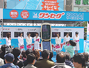 「地上デジタル推進大使」6名のアナウンサーによる記念イベントでは、島津有理子(NHK)、馬場典子(日本テレビ)、丸川珠代(テレビ朝日)、竹内香苗(TBS)、森本智子(テレビ東京)、中村仁美(フジテレビ)(以上、ワンセグのチャンネル順・敬称略)がステージでそれぞれ自局のワンセグをPR、笑顔をふりまいていました。